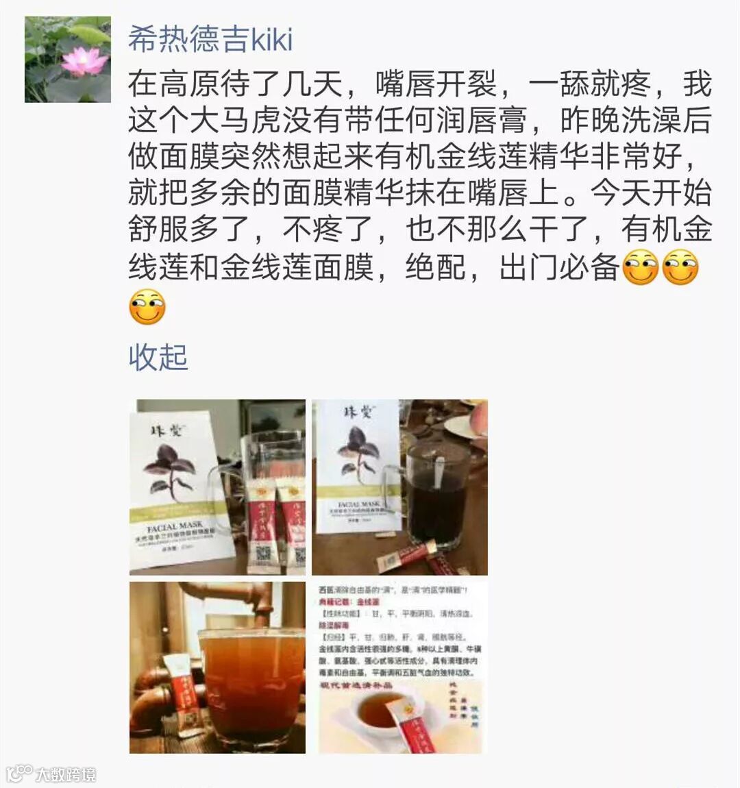 珠曼面膜含有的珍贵儒兰有机金线莲提取物,可以抗菌消炎,舒缓镇定,同时加强角质层的防御功能,有效抑制自由基活性,为肌肤补足流失的水分、修复受损肌肤缓解皮肤衰老,从根源上改善肌肤的问题。