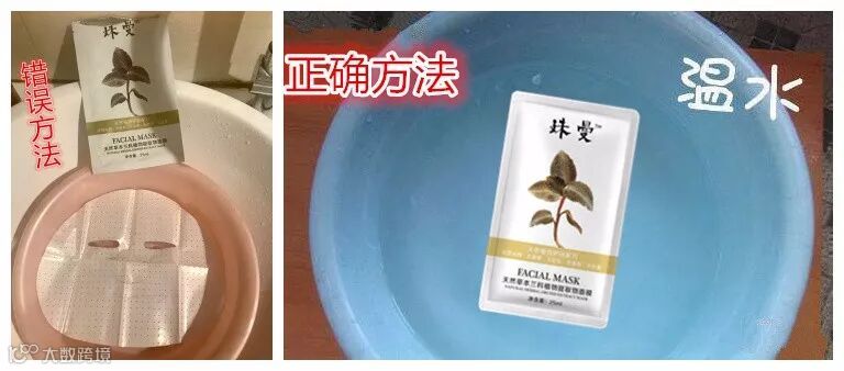将面膜泡在温水里2--5分钟(温水不是热水,你一旦把面膜放在过热的水温中加热,很有可能就会导致面膜分子产生变化。分子一旦发生变化,就容易让面膜变质。)