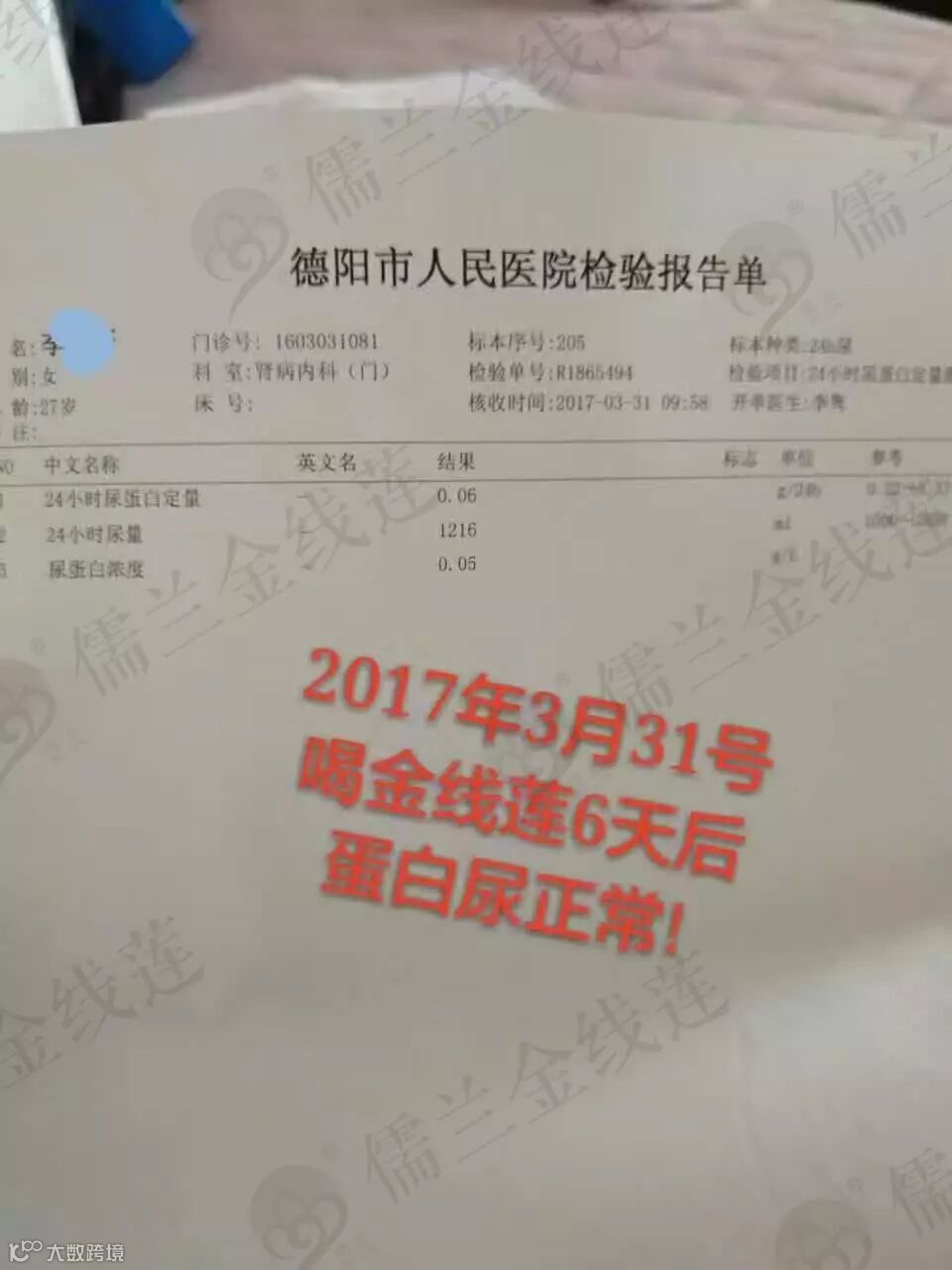 喝一个月儒兰金线莲化验后血尿正常了,蛋白尿转阴。