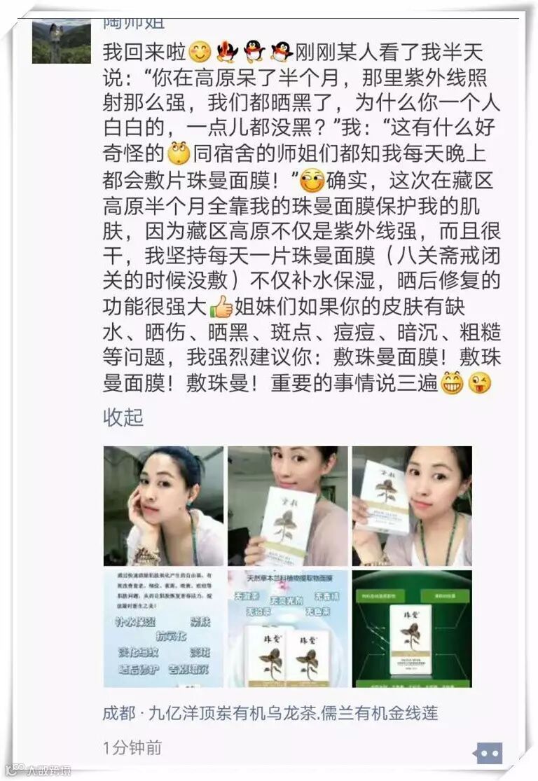 经3400米的高原检验,珠曼帮助她成功抵御紫外线的侵害