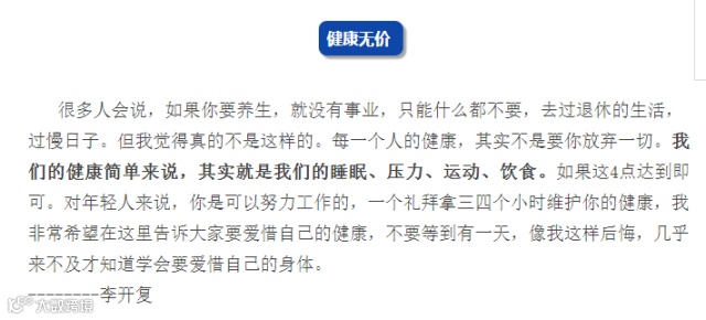 复旦大学一位罹患乳腺癌的教师于娟,自知时日不多,忍着病痛,像写论文一样,仔细分析自己为什么会得癌症。当时我在微博上转贴并回应了这篇文章:“很多时候,我们不在乎、不珍惜我们的身体,只在病痛上门时怨恨痛苦。”