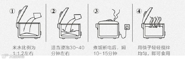 大米和水的比例为建议【1:1.2】(每个人的口感不一,也可根据您平时煮饭的比例)。