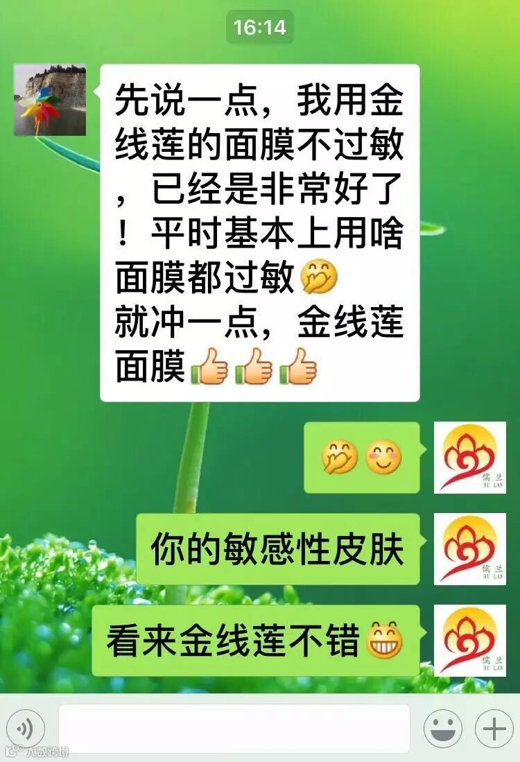儿子回老家,水土不服再加上碰到蜘蛛丝,导致脸部过敏。刚好拿到了金线莲面膜试用装,就给儿子连续四个晚上敷,等到面膜干了就拿掉,没有用清水冲洗。第一次敷面膜后,第二天白天不用再涂抹止痒膏,第二个晚上红疹明显结痂,过敏情况明显改善。第四个晚上基本恢复,效果明显!