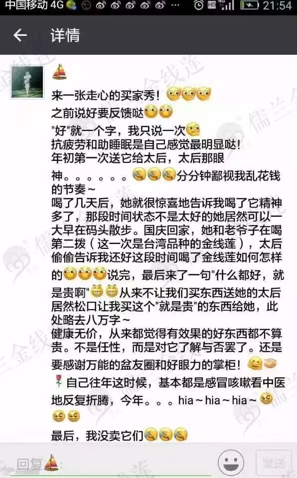 “母亲节,母亲过的不是节,是被爱的感觉。天下每一位母亲,其实永远都希望儿女多爱她一点。”在这个节日里,那就准备儒兰金线莲和一束康乃馨,送给妈妈,并告诉她:“妈妈,我真的很爱你”。