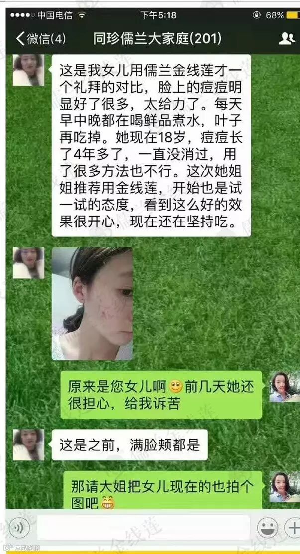 18岁青春期痘痘,喝儒兰金线莲一个礼拜都明显得到改善。
