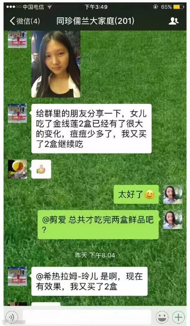 喝儒兰金线莲一周时间,脸上痘痘大红包淡了,而且平滑了。