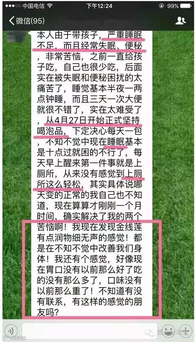 经常失眠,便秘,喝儒兰金线莲以来,不知不觉改善了身体的各种问题!