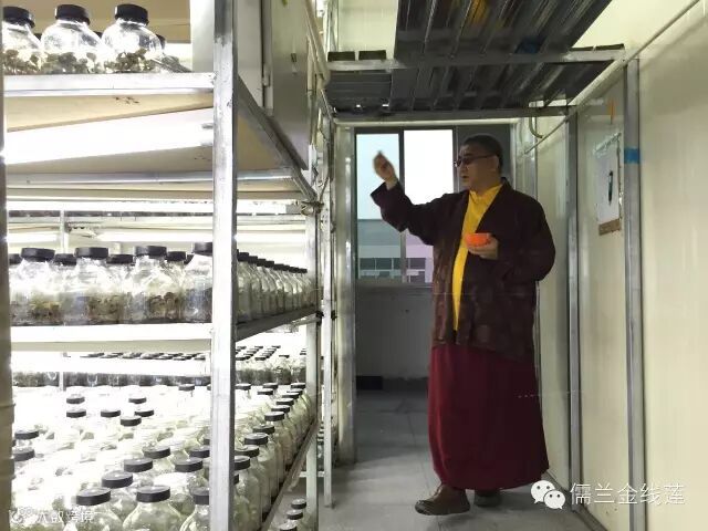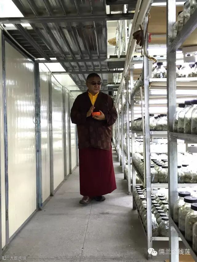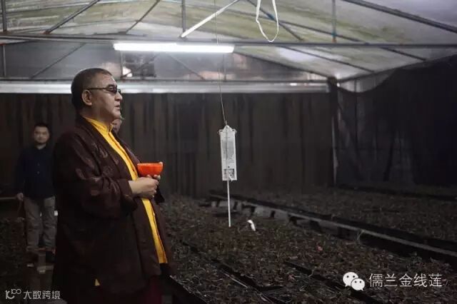 上师抵达儒兰已是15日近下班时间,稍事休息,即从“实验基地--种源培养室——接种室——音光培育室——成品”没有遗漏一个生产环节,没有遗漏一间办公室,全都慈悲一一念"药师经”、“无量寿经”等经咒加持。