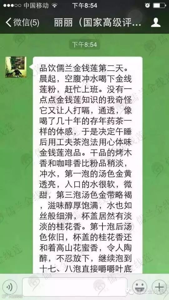 感谢这位成都的国家级评茶师---丽丽,她的文字,引领我们细细品鉴了一次儒兰金线莲,带给我们不一样的体验!
