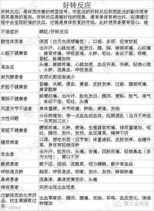 每个人的体质不同,出现的反应也不同: