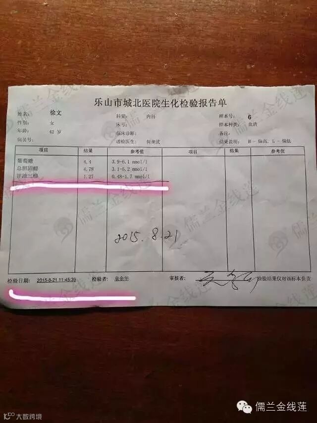 长期的高血脂(甘油三酯指标高),金线莲断断续续喝了三个月,指标正常!