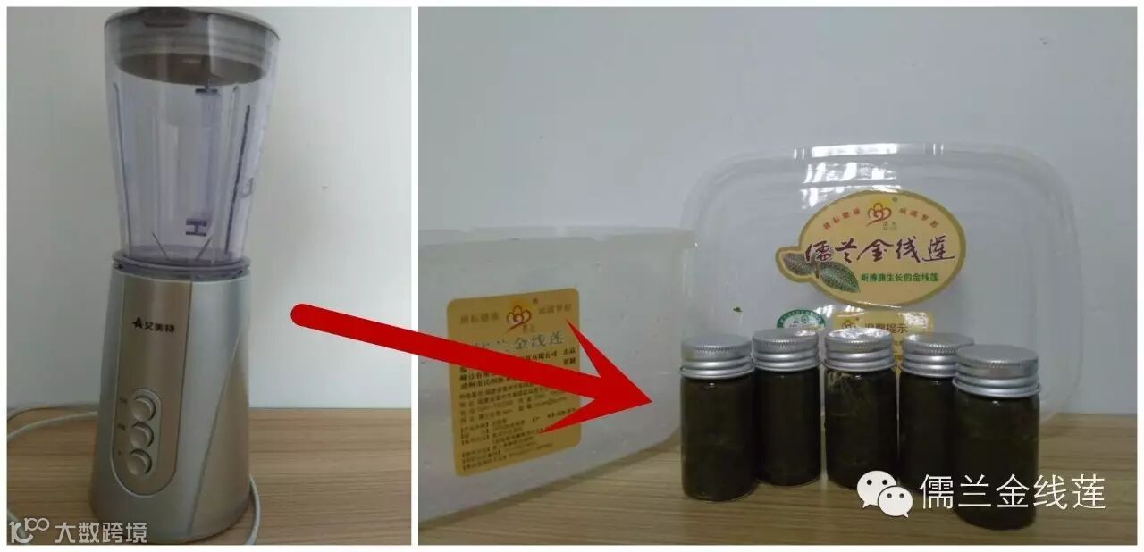【准备工具】:榨汁机或料理机,玻璃罐,儒兰金线莲鲜品50g,压缩面膜,小勺。