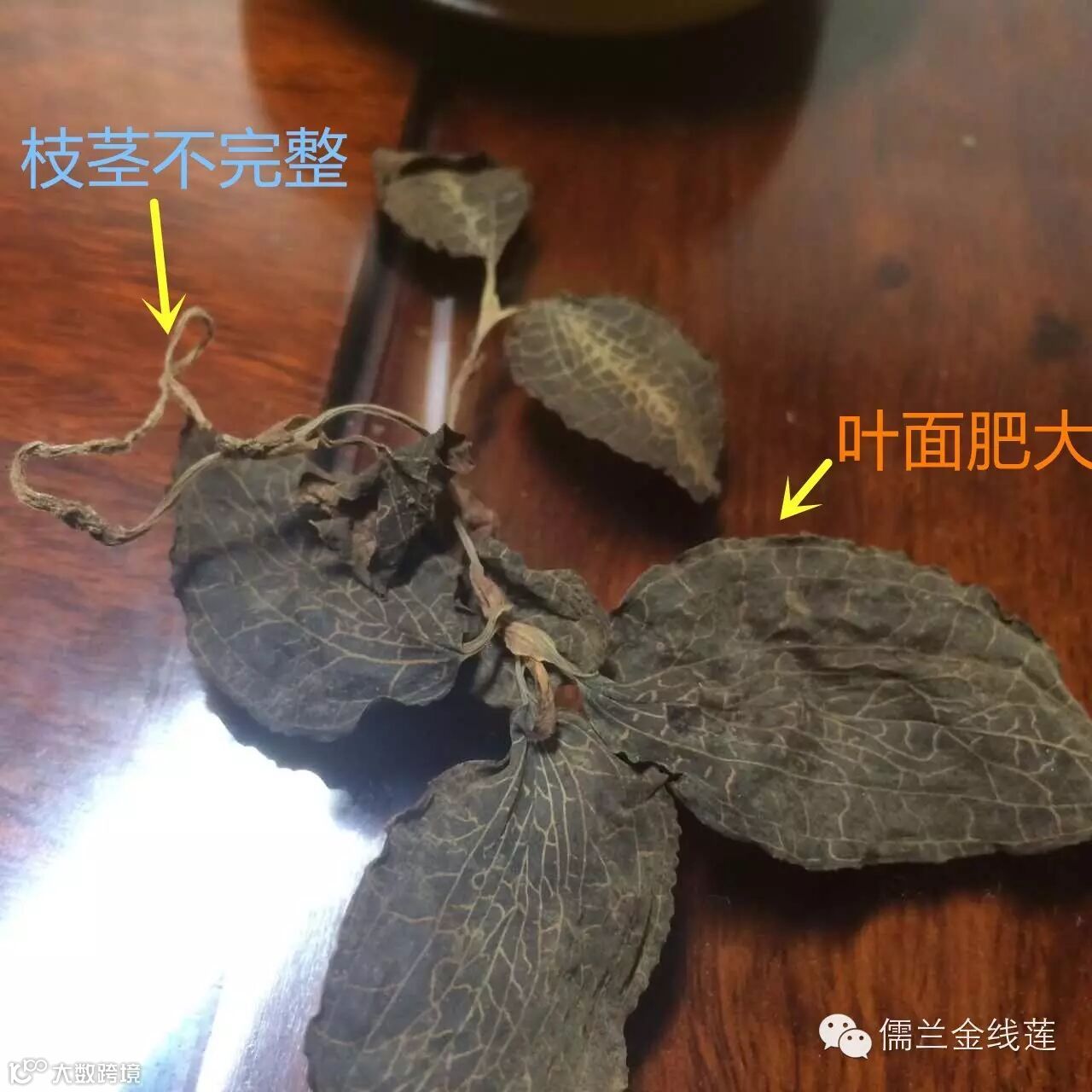 【辩解是不是金线莲】观察其叶面,是否具有细密的金线叶脉并形成网状(福建种:金网脉,台湾种:银网脉)茎是否细长。气味上,金线莲有属于它独特药草香味。(因金线莲干品易碎,也可冲泡后小心取出完整的叶面观看)
