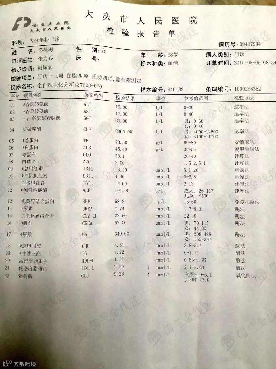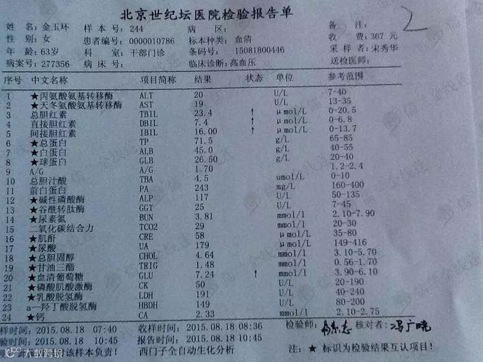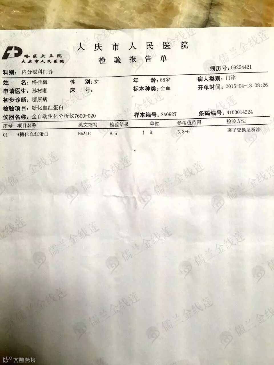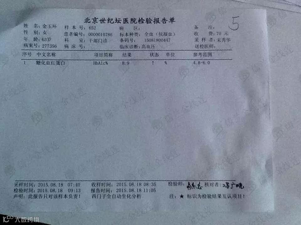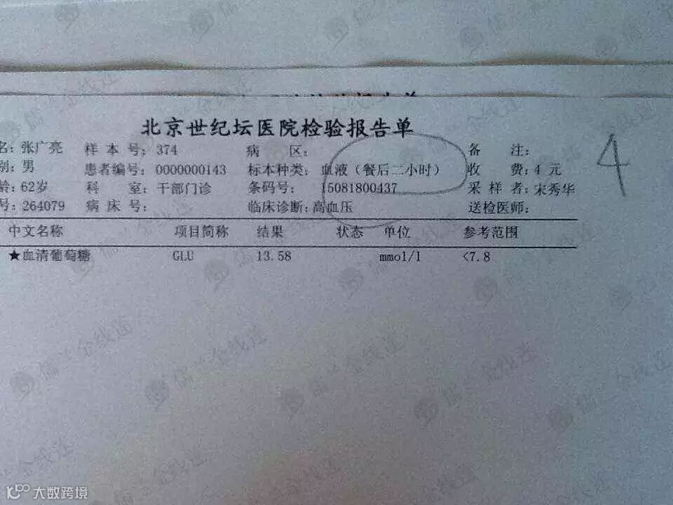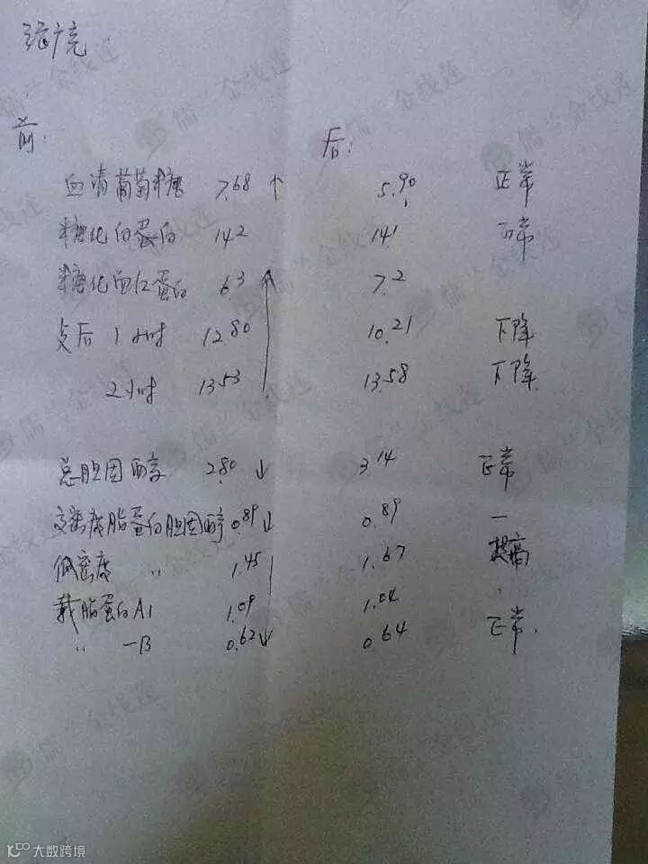 血糖:8.5↑--7.8