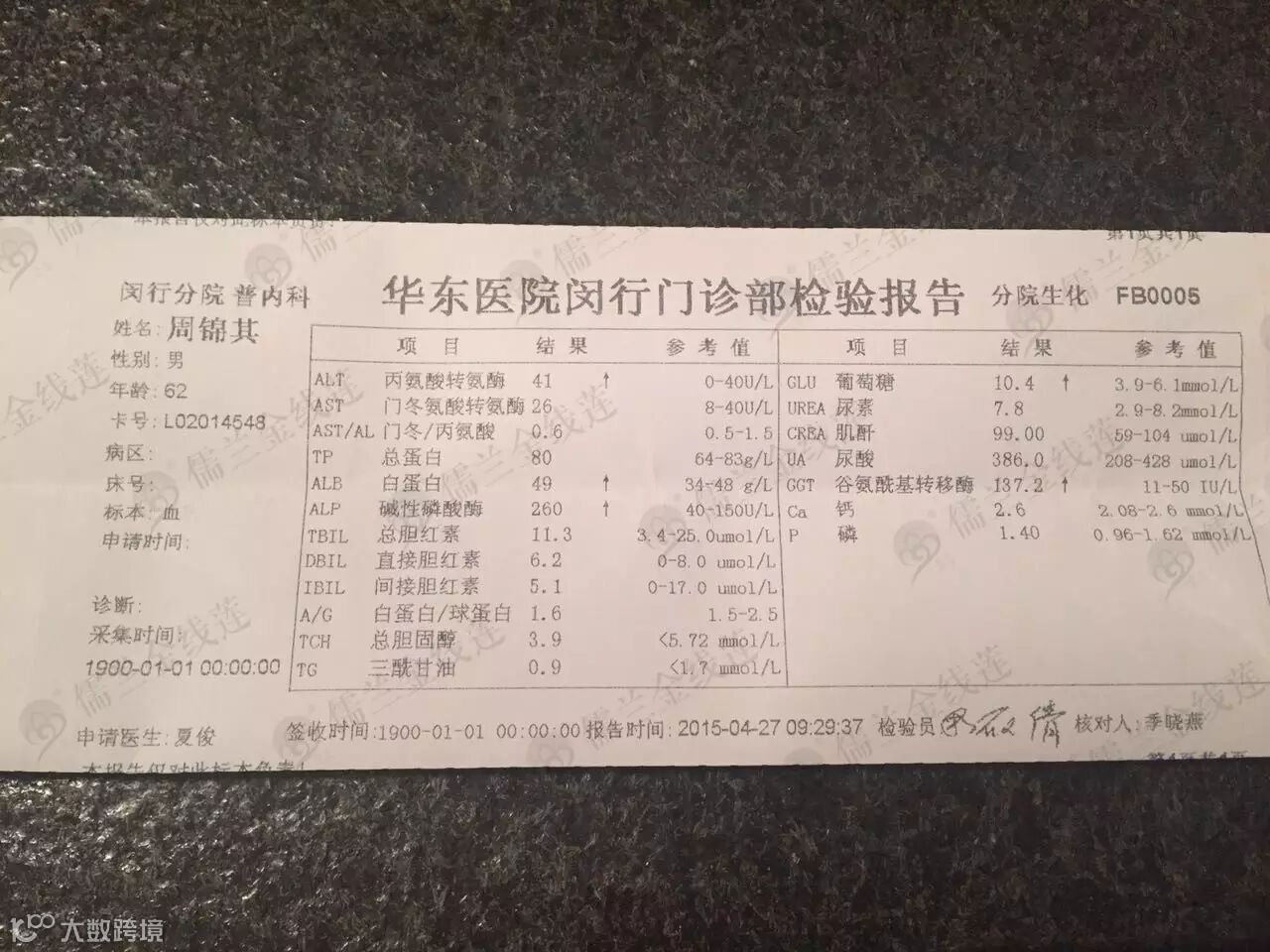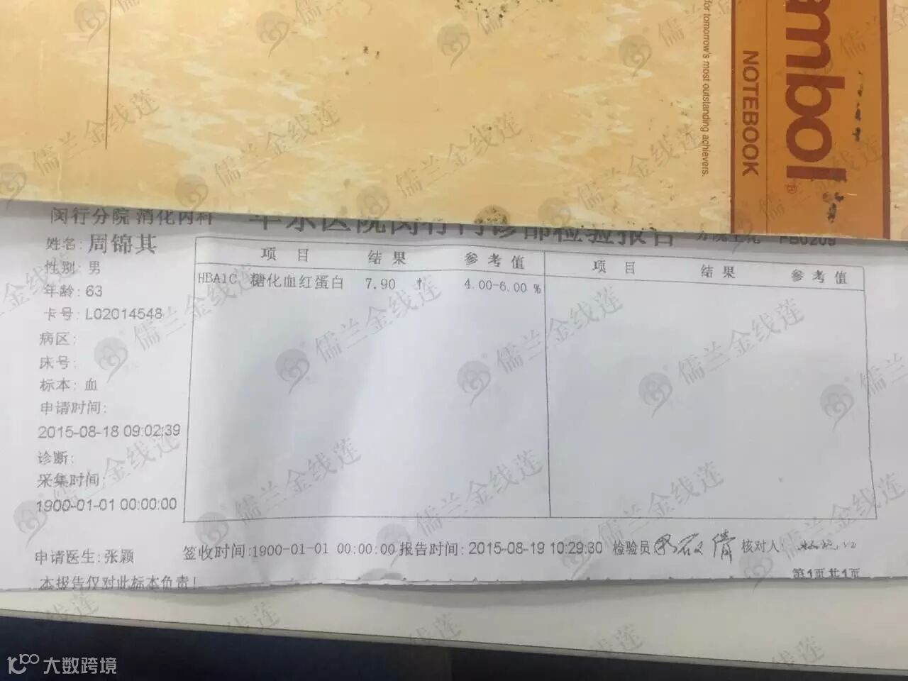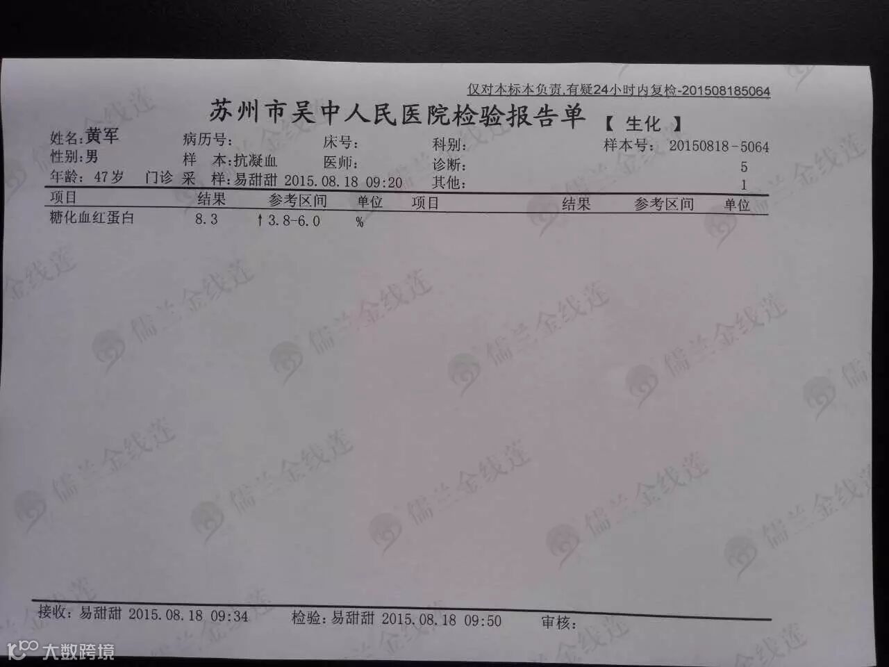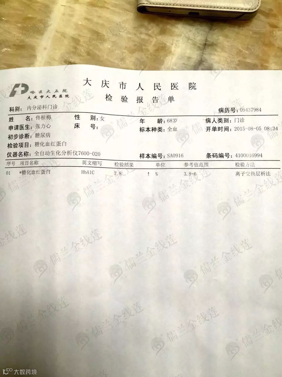 血糖:8.5↑--7.8