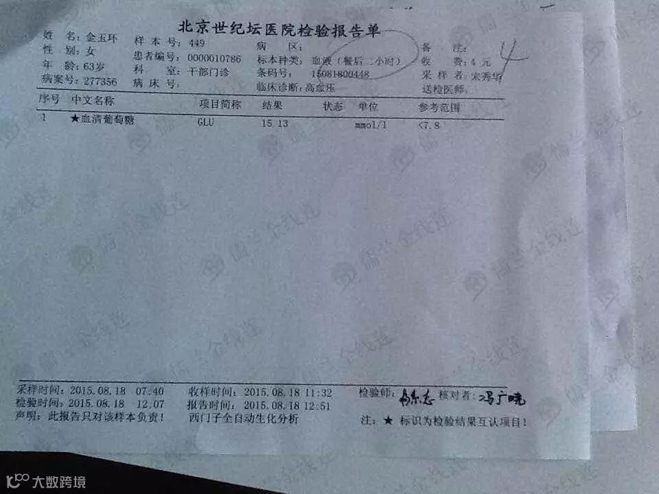 餐后2小时血糖:18.45↑--15.13。