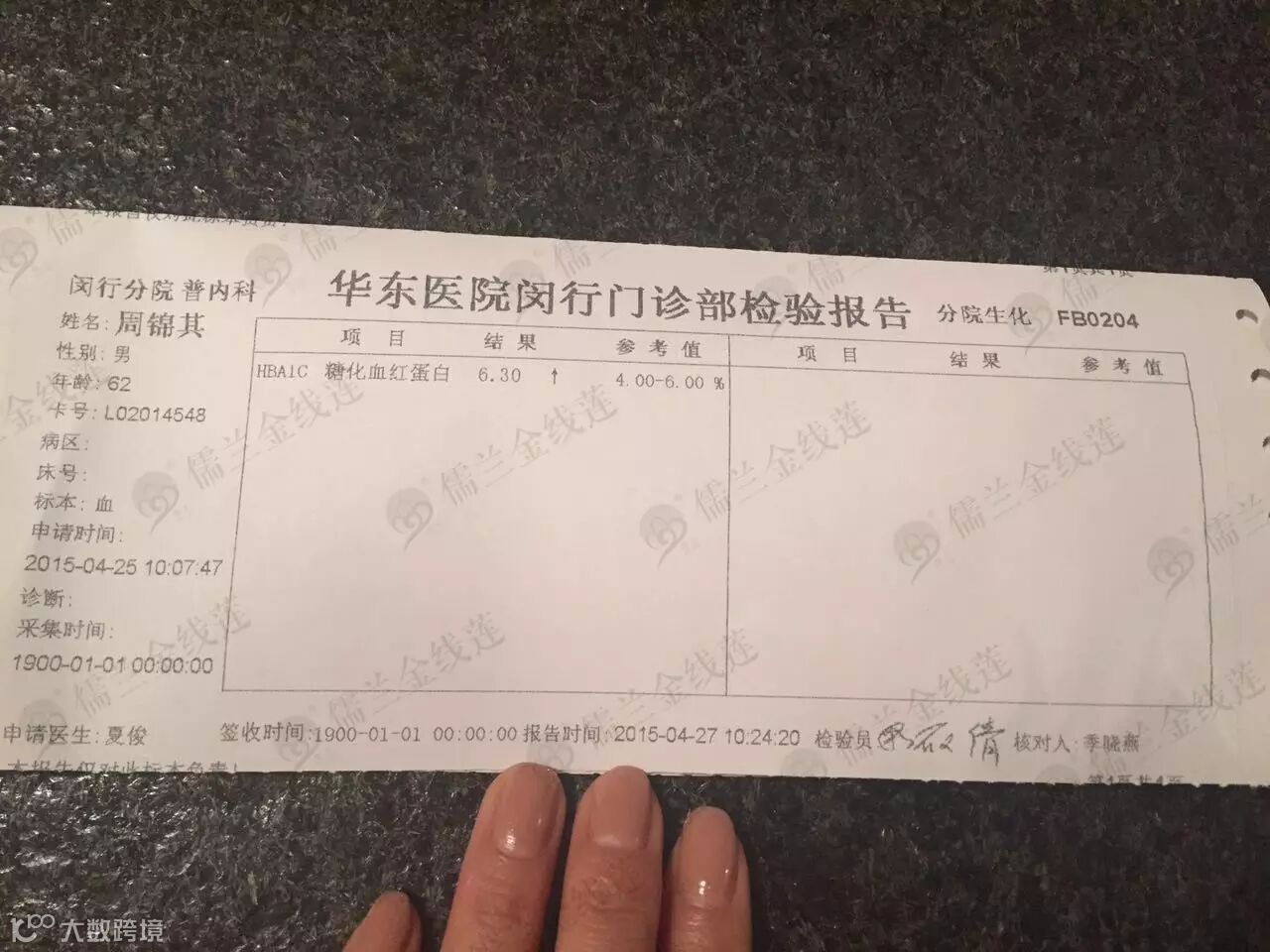 糖化血红蛋白:6.3↑--7.9