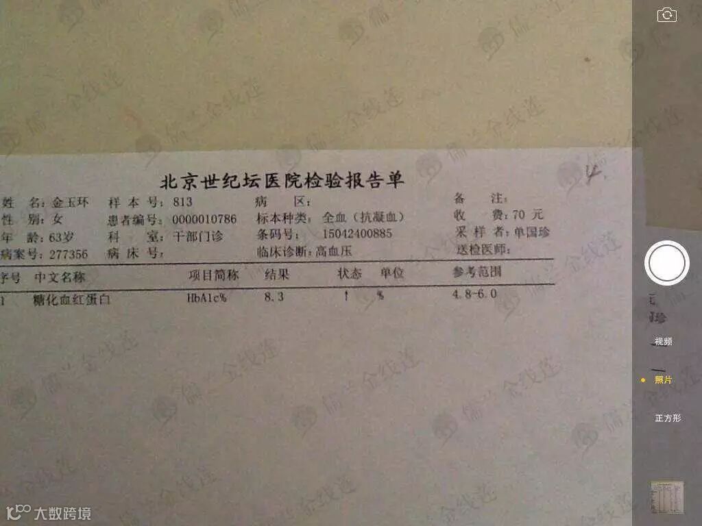 糖化血红蛋白:8.5↑--7.8。