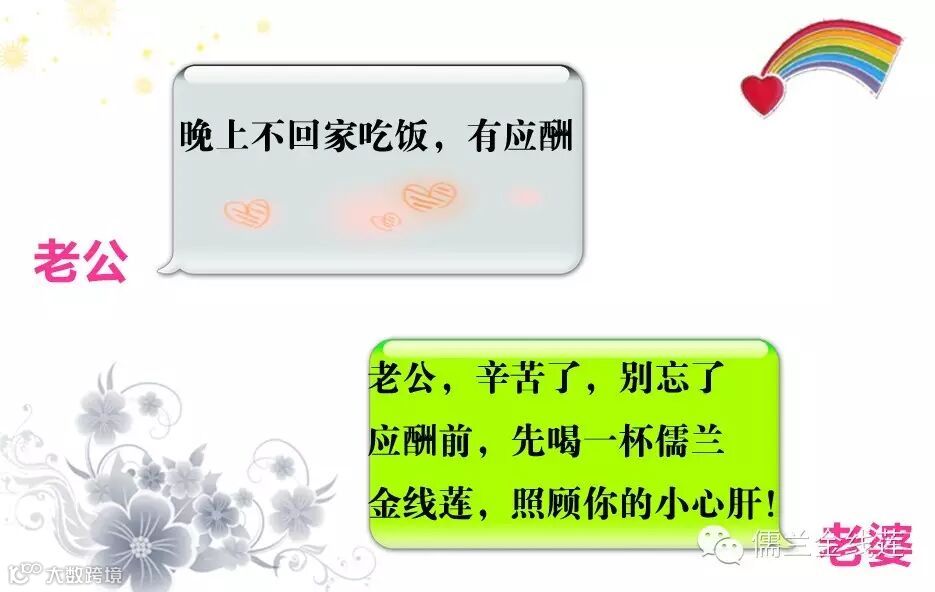 当老公电话或者信息,告诉你,晚上又有应酬,别忘了嘱咐一句:“老公,辛苦了,别忘了应酬前,先喝一杯儒兰金线莲,照顾你的小心肝!”