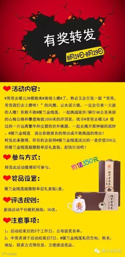 8月14号也就是明天早上8点:在@儒兰金线莲微博上发起了