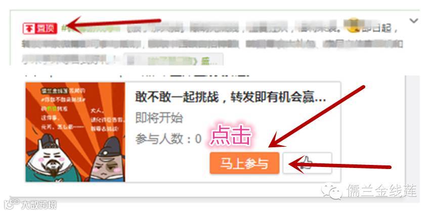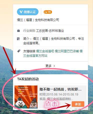 进入@儒兰金线莲后,可在主页找到---置顶的那条微博,点击文字内的小喇叭图标后的文字,即可进入活动页面,