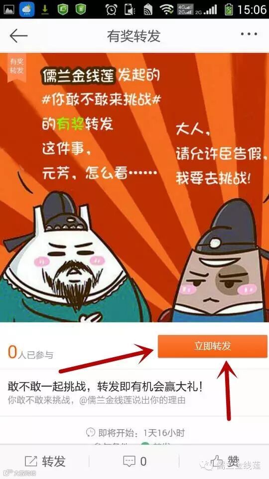 点击参加即可进入活动界面:点击立即转发(如图)