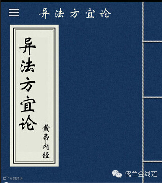 【异法方宜论:异法,指不同的治疗方法;方宜,谓地方环境各有所宜。本篇讨论了由于居住地区不同,人们受自然环境及生活条件的影响,形成了体质上的差异,因而产生的疾病有一定的区别,在治疗疾病时必须采取不同的方法而因地制宜的道理。故名“异法方宜”。】