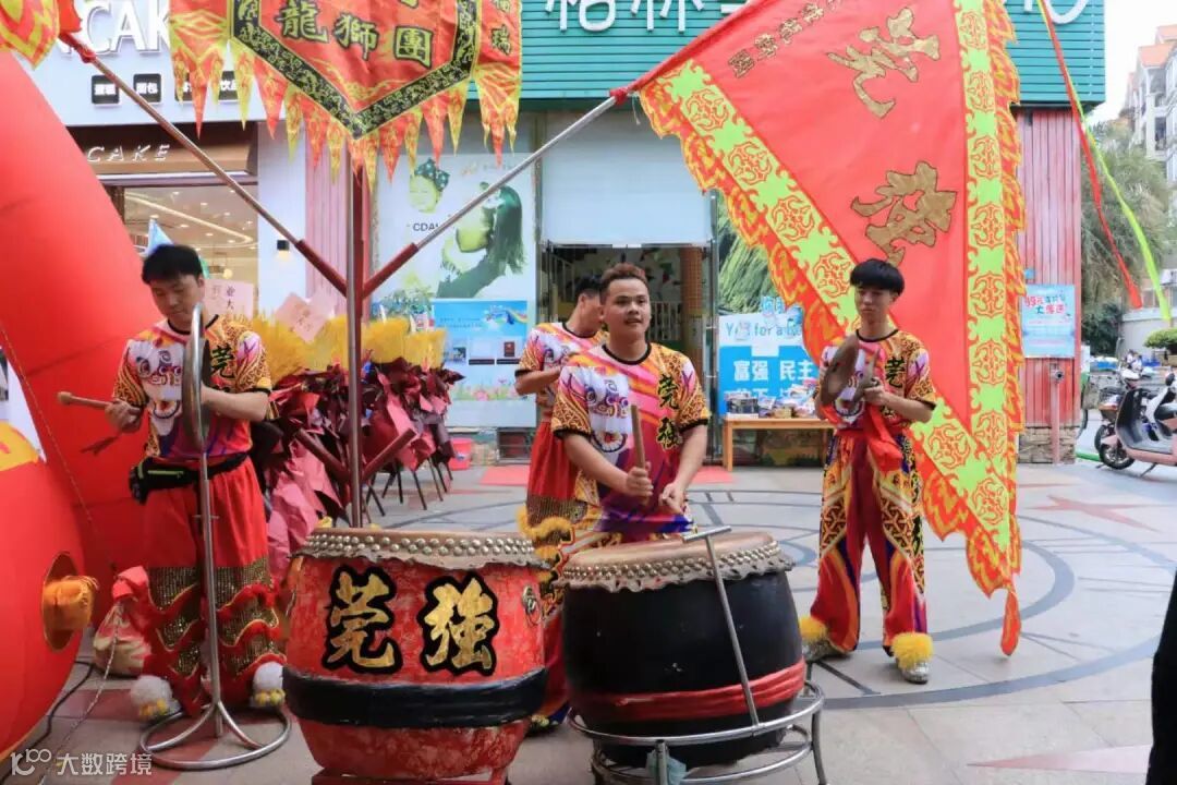 舞狮表演锣鼓喧天