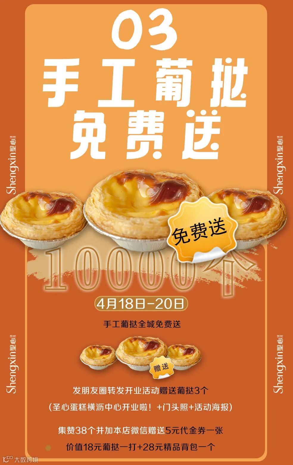 导读:圣心请吃霸王餐!10000个手工葡挞全城免费送~~