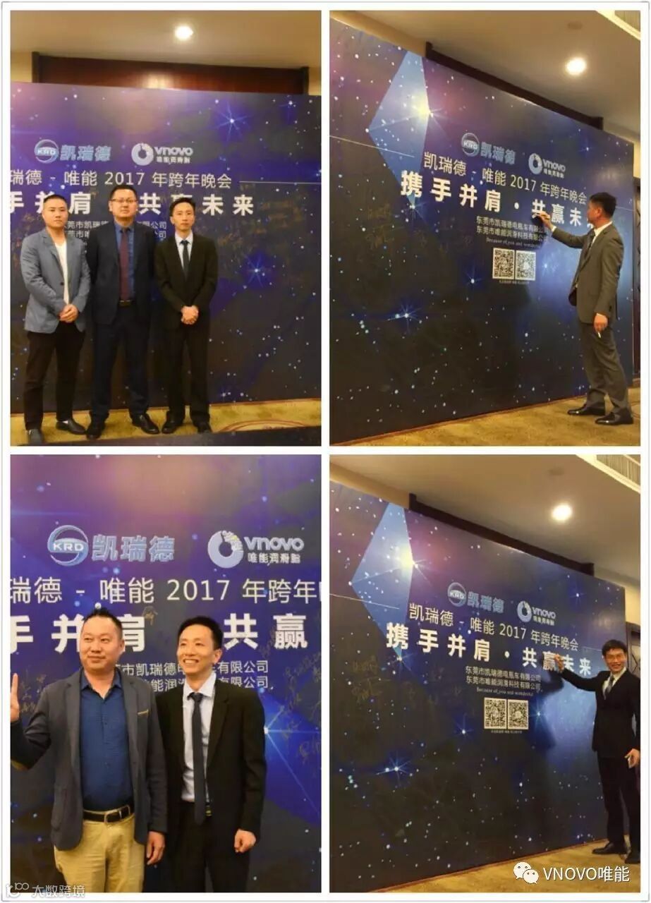 2017年1月11日18:00,以“携手并肩 共赢未来”为主题的凯瑞德·唯能2017年跨年晚会暨特种润滑行业论坛在塘厦五星级新都会怡景酒店成功举办,所有经销商、客户、同仁们齐聚一堂,为2016年划上圆满的句号。