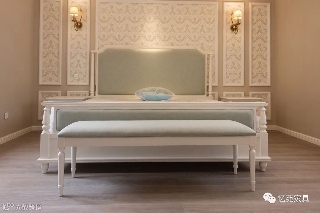 次卧小孩房家具采用实木材质定制的简欧风格,环保坚实稳定,田园清新自然的白色质感,细细触摸木头纹路清晰,显得空间清新自然感。