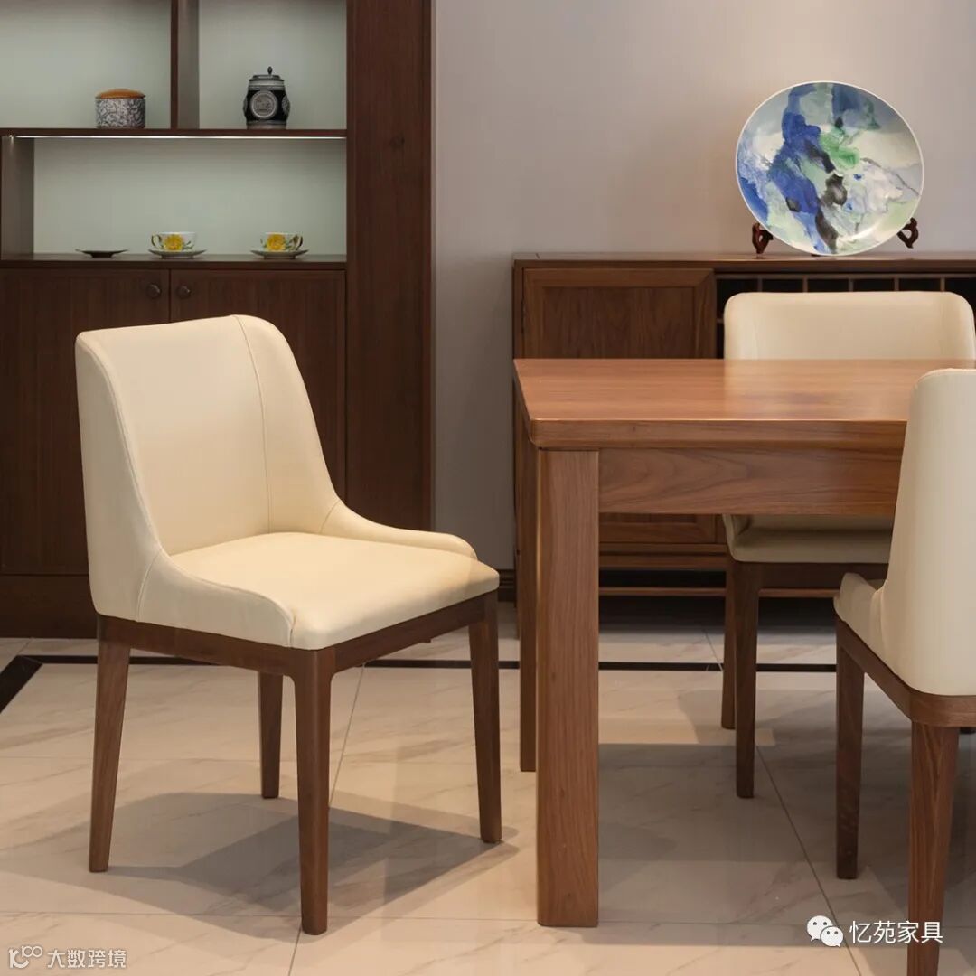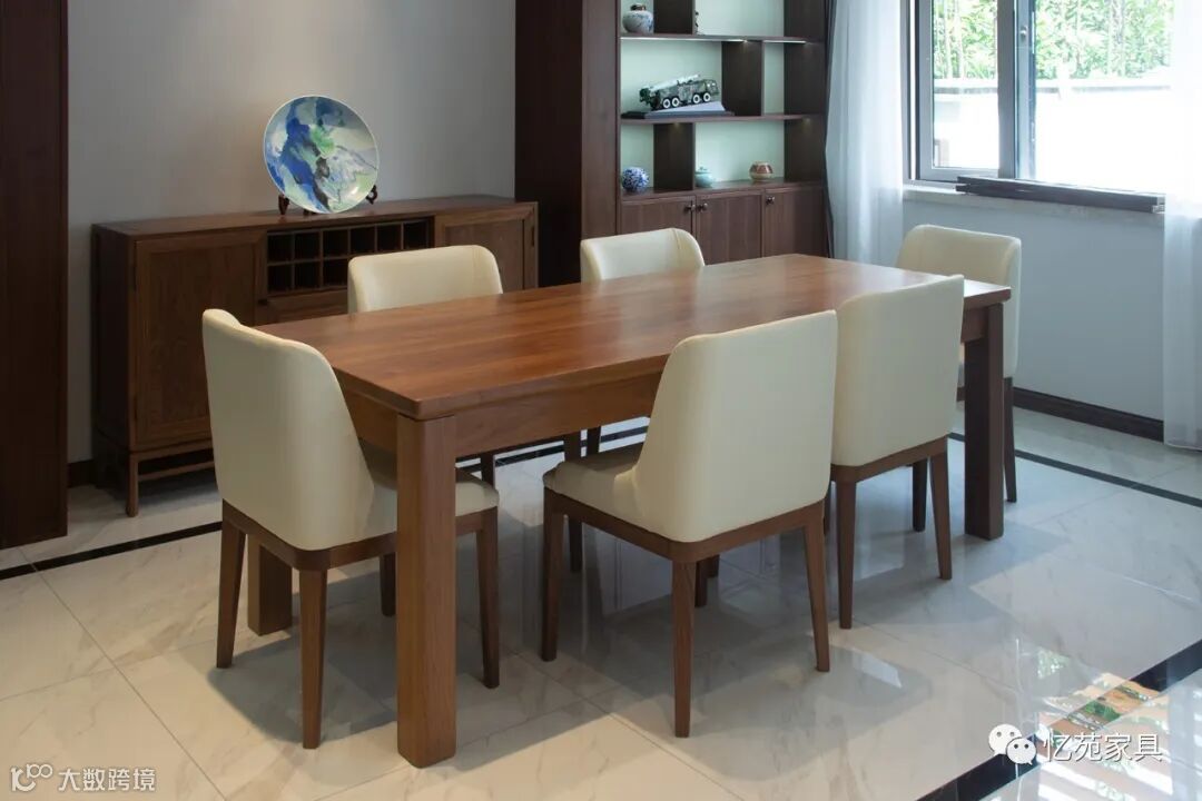 餐桌造型简约,用料讲究,实实在在,配上设计感十足的真皮座椅,轻巧圆润的线条,光滑的表面,纤巧的木脚,简约却不失风姿,营造出端庄优雅的用餐氛围感。
