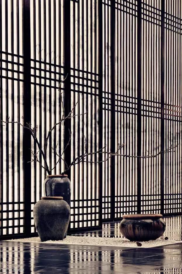 禅的精髓在于“不说破”,留给他人思考的余地。虚实结合,透过白墙上深色的格栅影影绰绰一瞥背后的光景,蜿游其中,欣赏木器之精美。