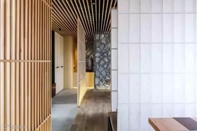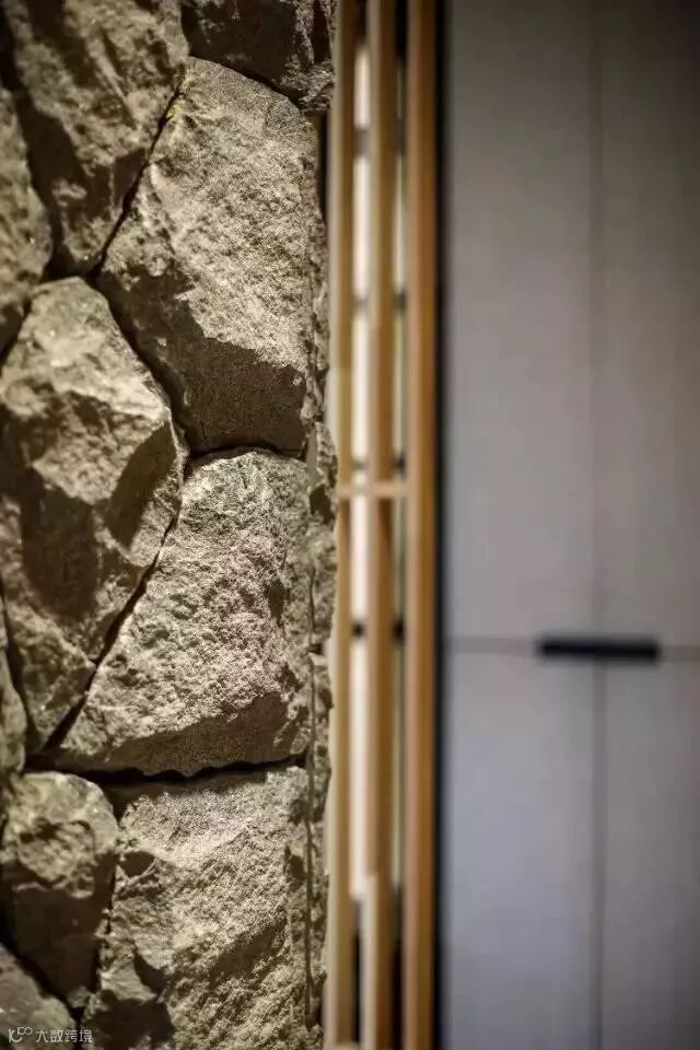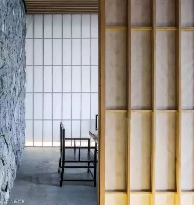 格栅或横或竖,或平或直,于似隔非隔间幻化无穷,扩大空间的张力。格栅之外,障子纸和石头亦是空间的亮点。