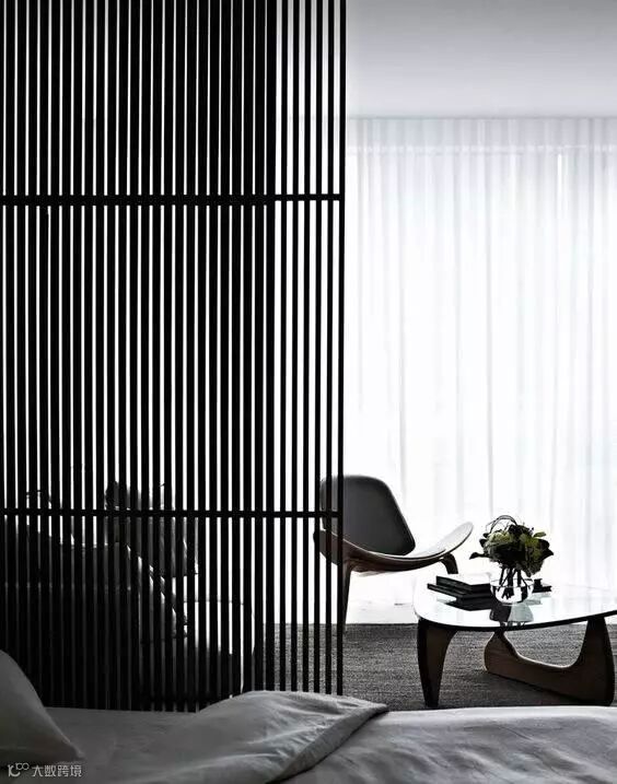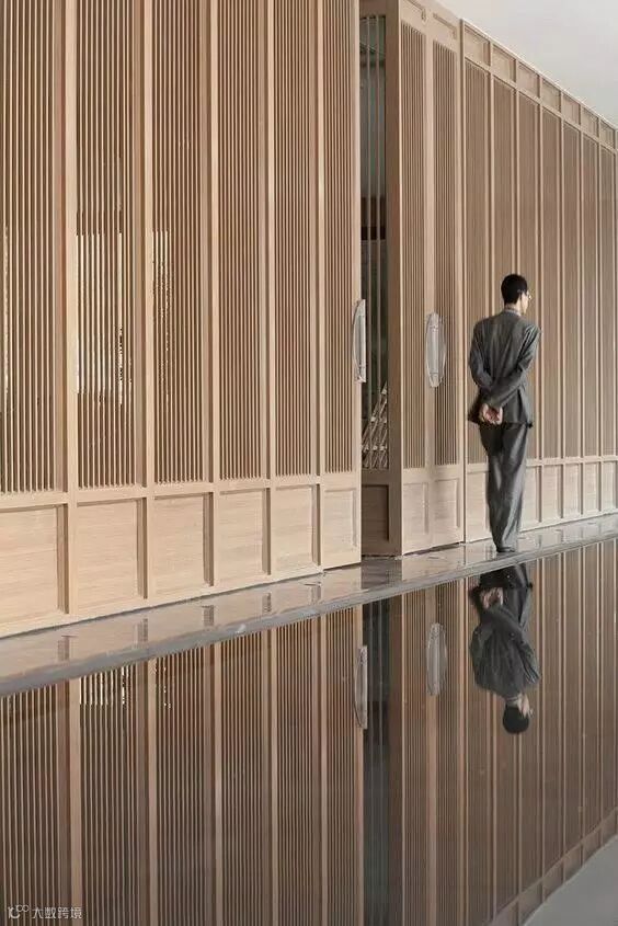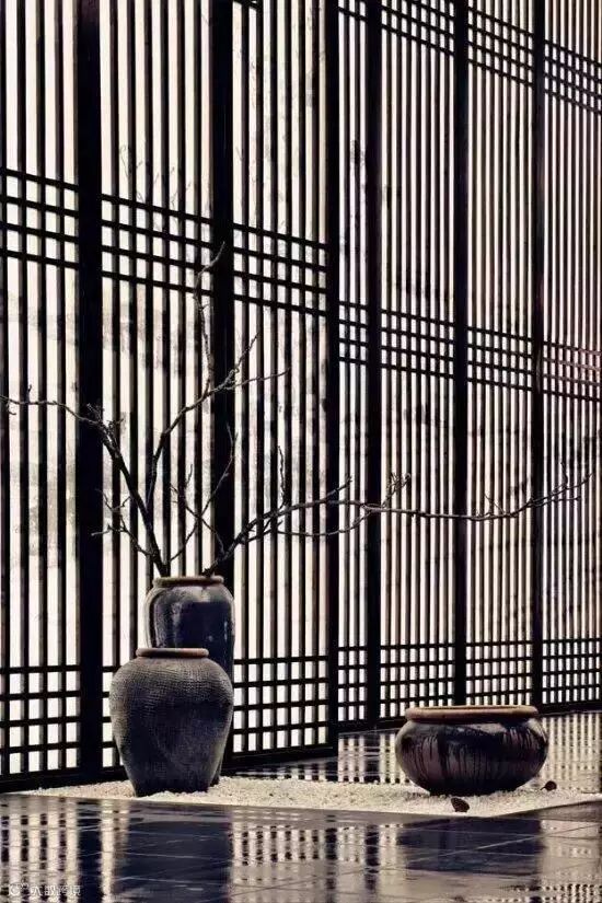 在东方文化中,格栅无论是空间与空间的隔断还是精美雅致的屏风,它都可以做到朦胧优雅不沉闷,创造光与影的魔术。光线透过格栅呈现出一种如同皮影戏般的艺术张力,格栅外走动的人亦成为戏中一角。