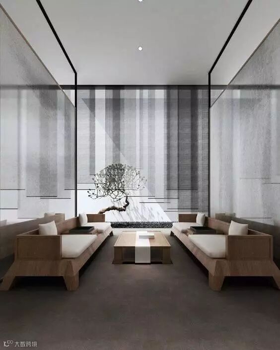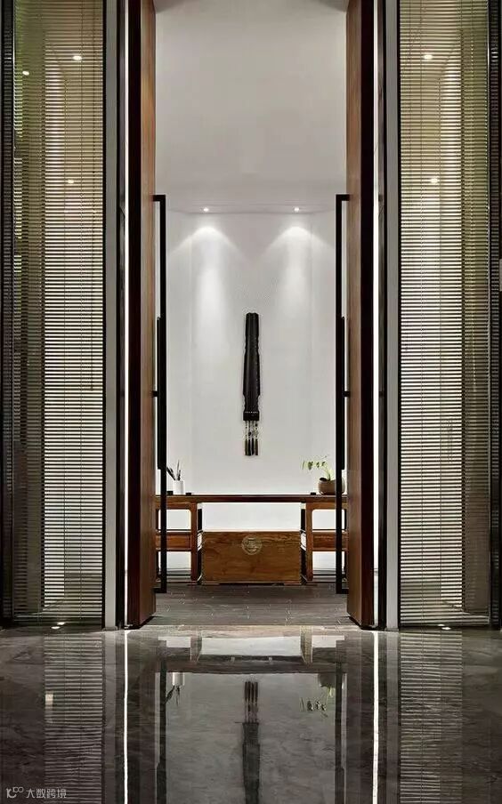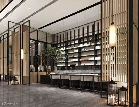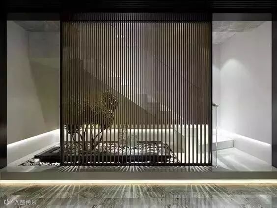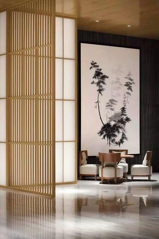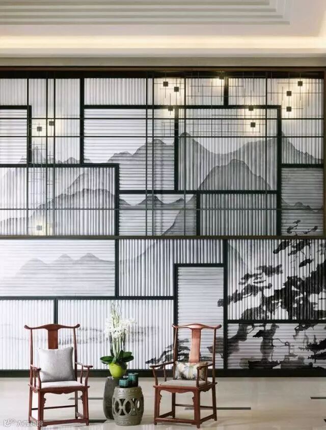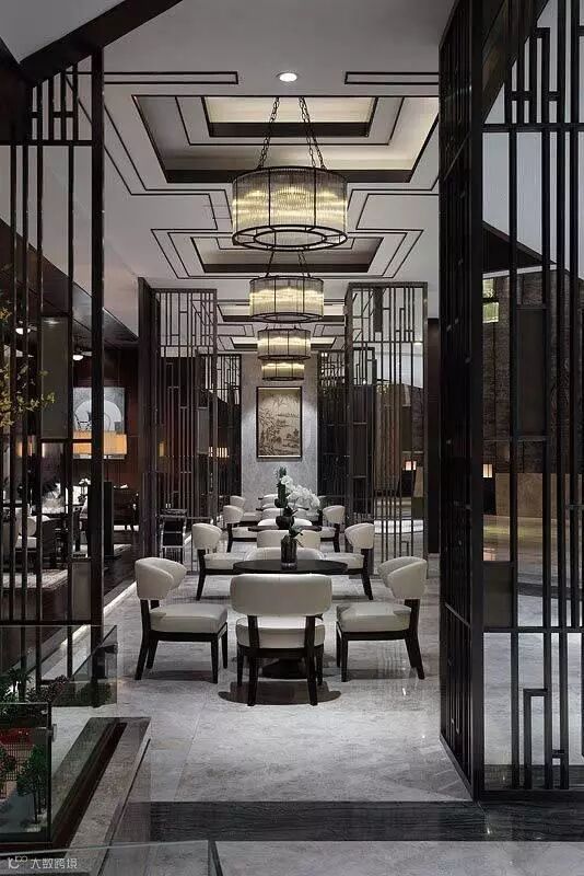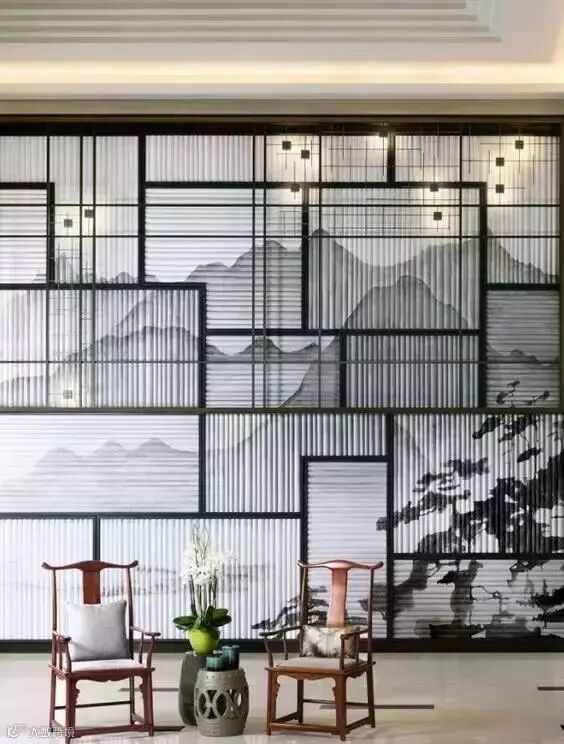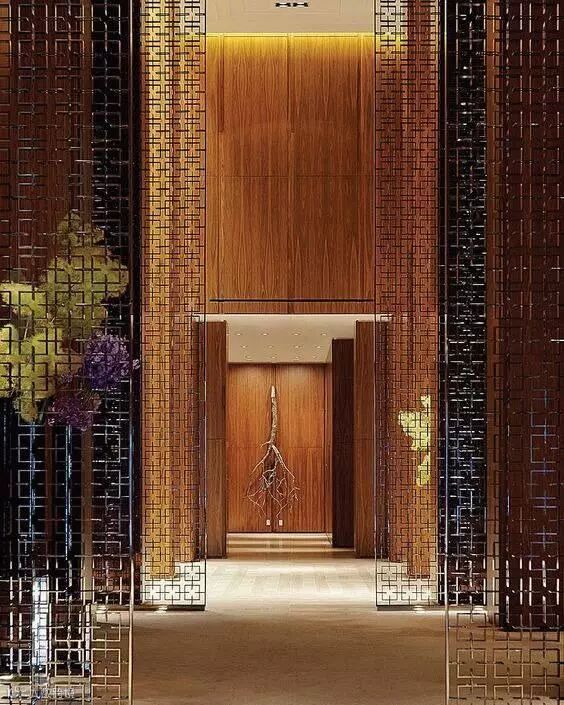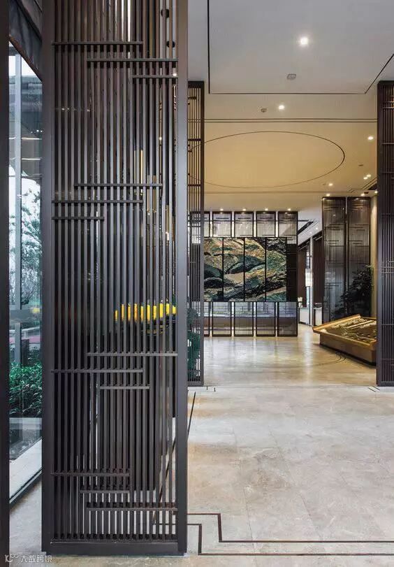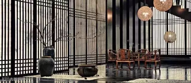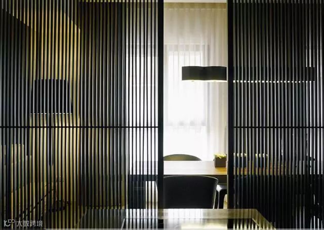 格栅在空间与空间的隔断中可以做到朦胧优雅不沉闷,创造光与影的朦胧之美。光线透过格栅呈现出一种如同皮影戏般的艺术张力,格栅外走动的人亦成为戏中一角,因此被大量的运用到中式空间设计中去。