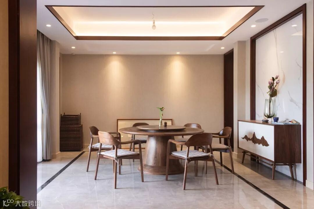 客厅家具混搭,木制沙发,皮质椅子多元材料结合显得时尚而不沉闷。客厅高级灰地砖带来的是高级,客厅与餐厅相呼应,凸显了东方美学中的空间层次感。