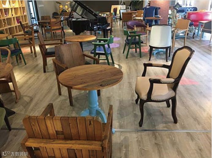 会客区,看似不相搭界的桌椅随意搭配,实则张中有驰、匠心独运,呈现出不对称的美态。