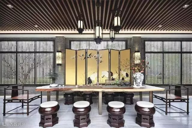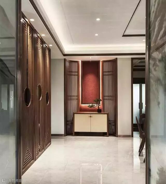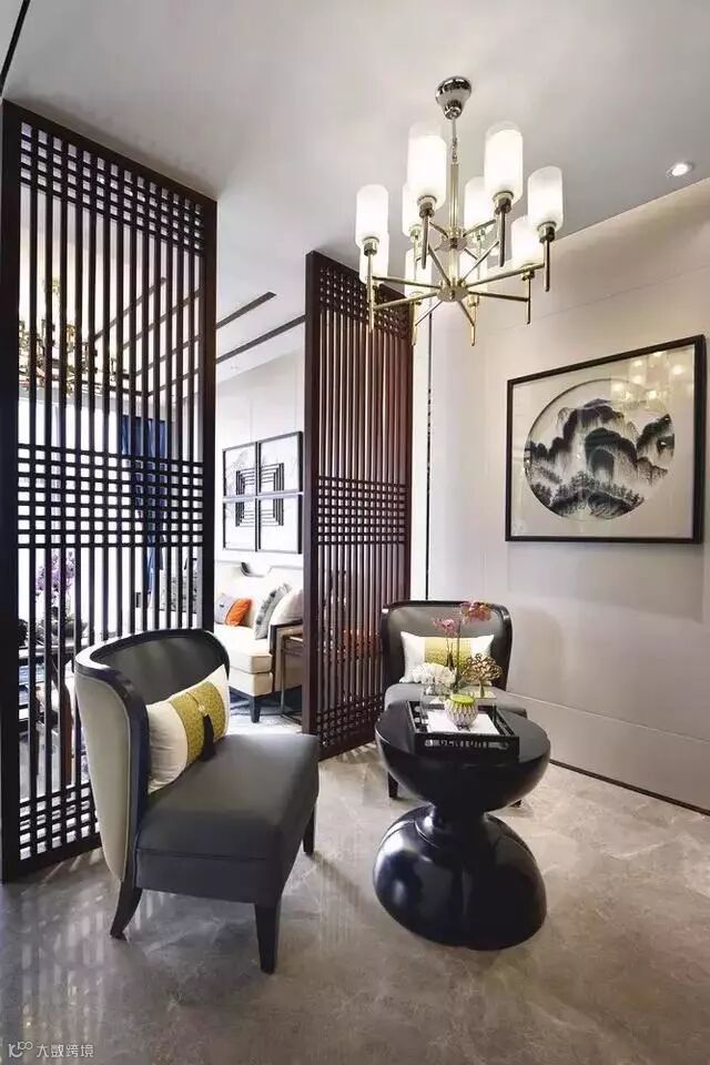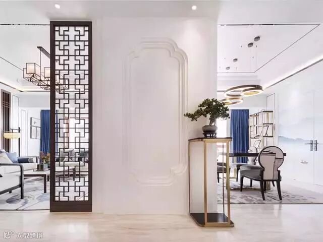 木质镂空类隔断可谓是中式的灵魂,常用的有回字纹、冰裂纹等。具有丰富的层次感,将中式风格中的典雅高贵、深厚文化底蕴演绎的淋漓尽致。