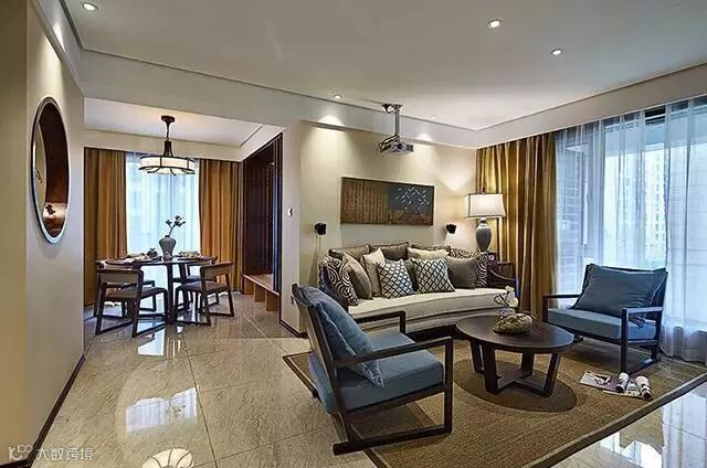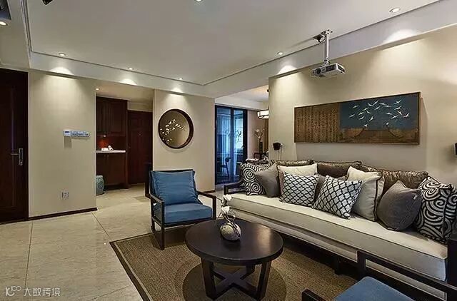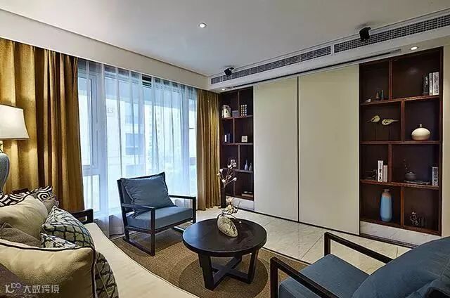 客厅没有安装电视机,但是有安装投影仪,直接投到两扇移门上,这就相当于家庭式影院了。