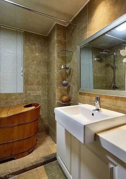 说实话,大家都比较习惯用亚克力的浴缸,可是我看到这个木质浴缸时,反而被吸引了,这个木质浴缸跟整体风格特别搭,真真的好喜欢!