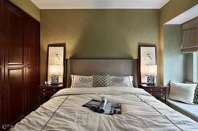 两个床头柜上,均放了一盏台灯,对于喜欢夜读的人来说,特别好。