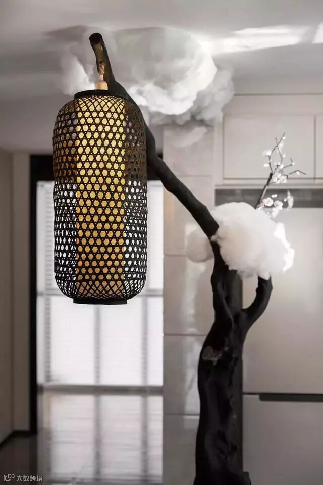 “梦回明月夜,林杉响圆吭”,从天花垂直而下的落地灯,含着虚心的品质,张扬着精进的意气。