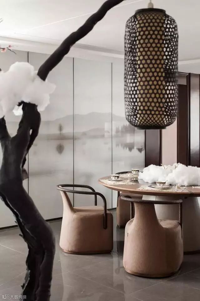 客厅一幅泼墨画卷,随着空间的穿梭,时光的变化,娓娓道来东方独有的气韵。