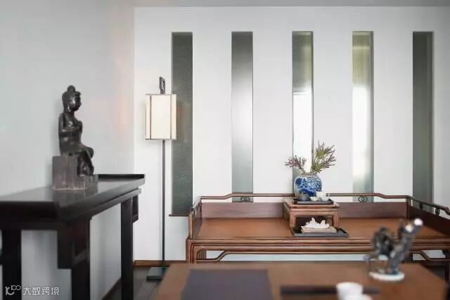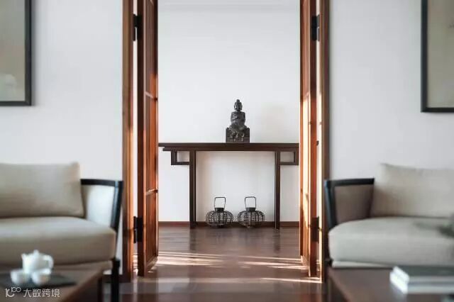 茶室入门的条案上,清净庄严的佛像摆件让禅意油然而生。在家中打造一间清新雅致的小小茶室,燃一线香,沏壶好茶,架上藏纳古物雅玩,在行云流水的琴音中体味淡泊的心境,细品袅袅的茶香,这未尝不是现代生活中返璞归真的诗意栖居。