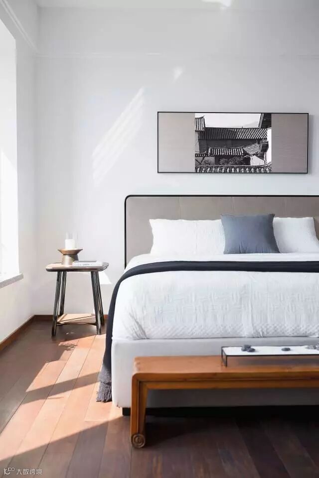 从传统艺术形式的留白、简约、隐喻中提取灵感,沿用简练、雅致的设计笔触,结合朴拙的物件,形成视觉上的碰撞与冲突,以情寄物,以物传情,赋予空间灵魂,更强调卧室空间艺术意境的营造,虚实相生自然皆成妙境。