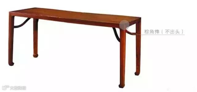 粽角榫——暗榫。明式方凳、案几等3个面都外露的角,则采用不出头的暗榫。