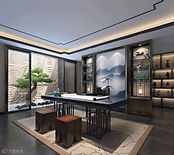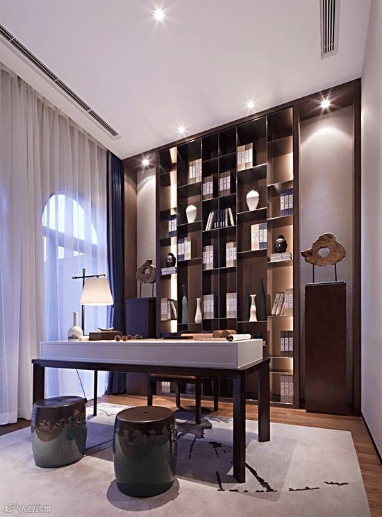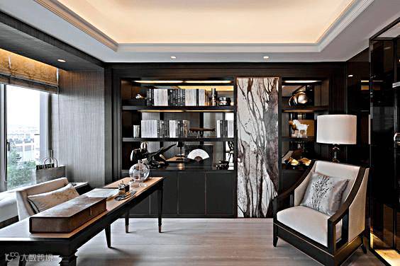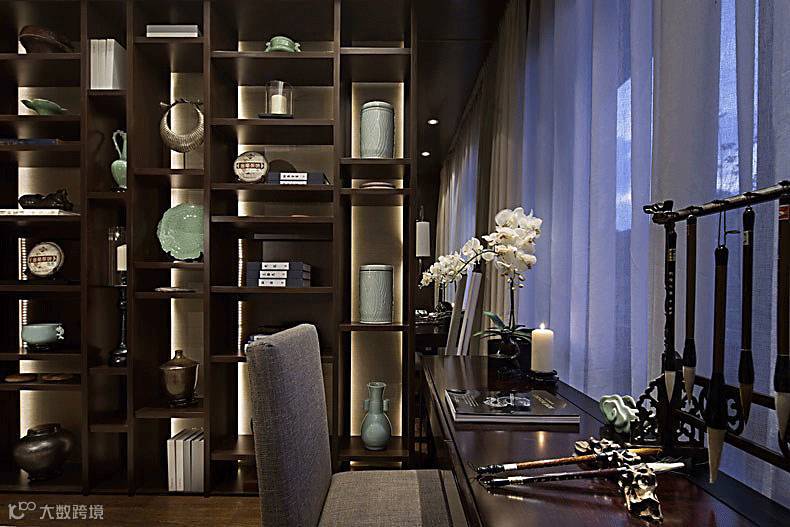 古色古香的家具,山水悠然的画幅,精致的茶具、瓷器和古玩,墨香四溢的一架书......当这样的书房与茶室融为一体,就渲染出一种温婉和谐、情趣盎然的意境。