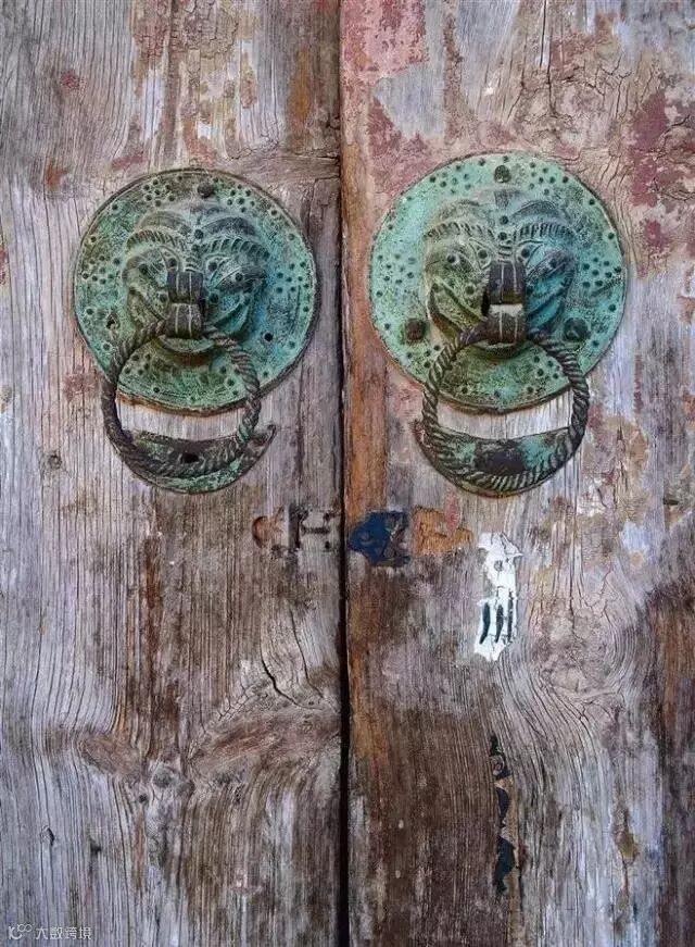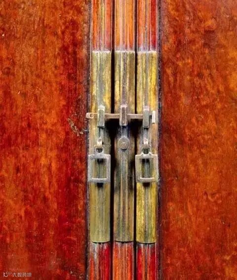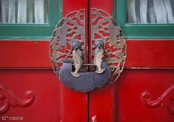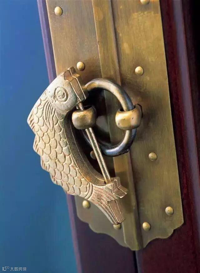 有些拉手还配上古朴的门闩。“鱼”的寓意是年年有余;“万”是吉祥标志。