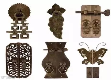 中国古典家具金属配件主要有:古锁、拉手、合页、包角、面叶、扭头、吊牌、曲曲、眼线、拍子、提环、套退等品种。